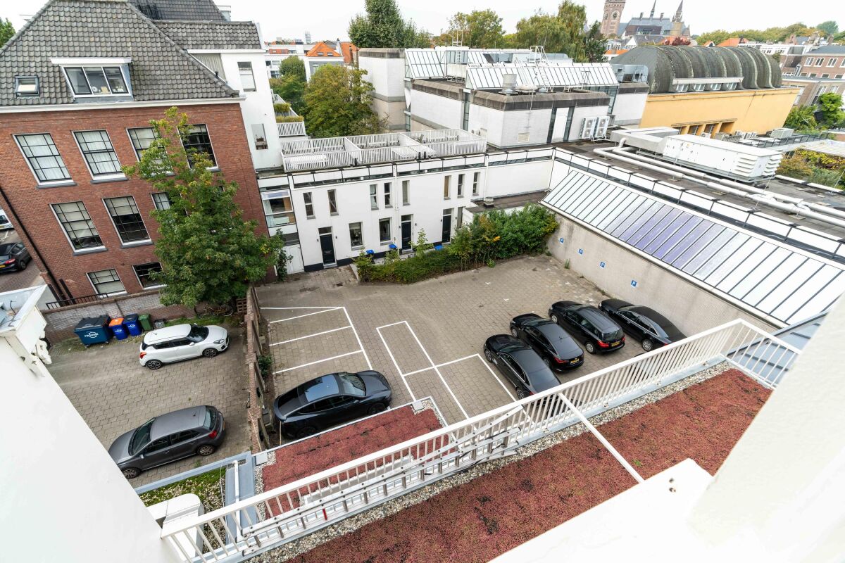 Het pand beschikt aan de achterzijde over een eigen parkeerterrein met ca. 10 parkeerplaatsen en 6 oplaadpalen, welke afgesloten kan worden met een hek.