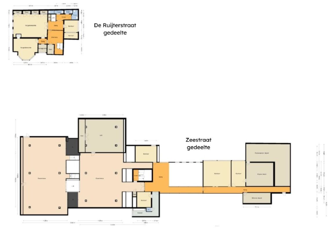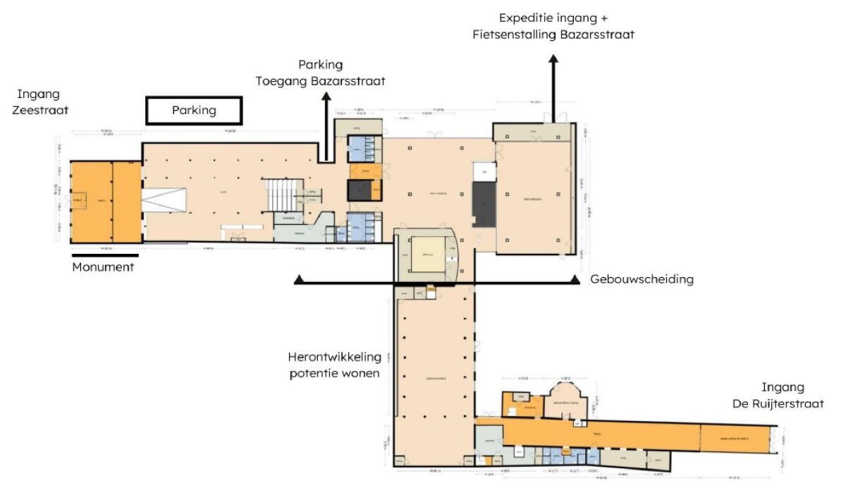 Het gedeelte aan de De Ruijterstraat kan alleen in combinatie met de Zeestraat worden gehuurd ten behoeve van een bedrijfsmatige invulling.